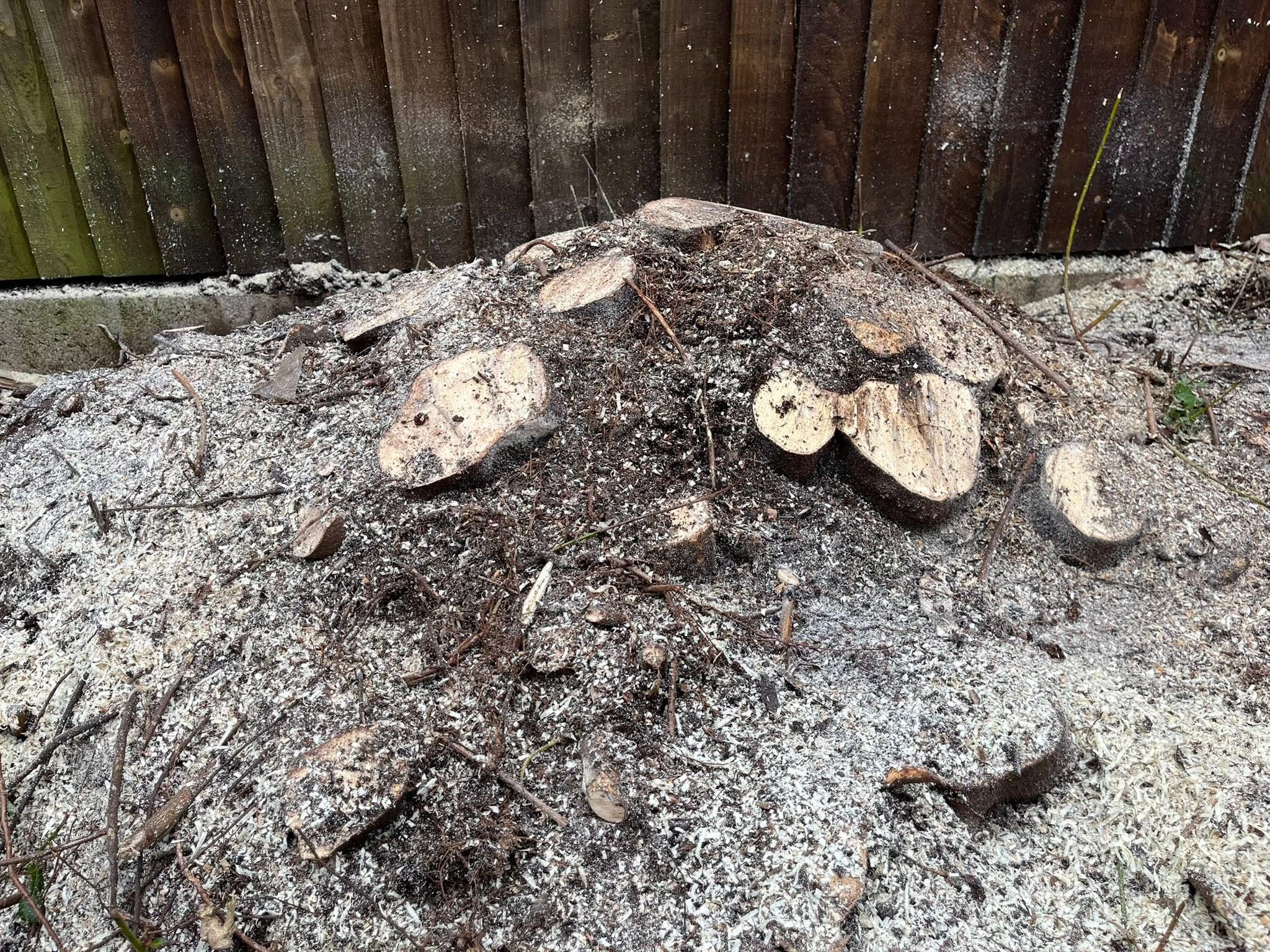 Please include photos of the stump area if possible. Note that soil mulch is backfilled into the pit, no arisings are removed from site unless otherwise requested.